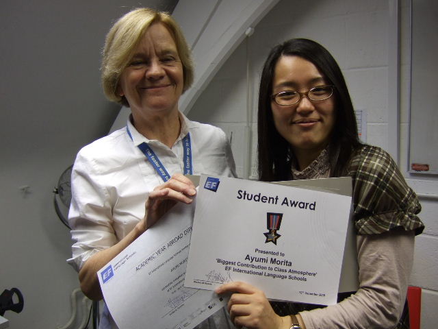 左の写真は僕の語学学校の最後の授業の時です。